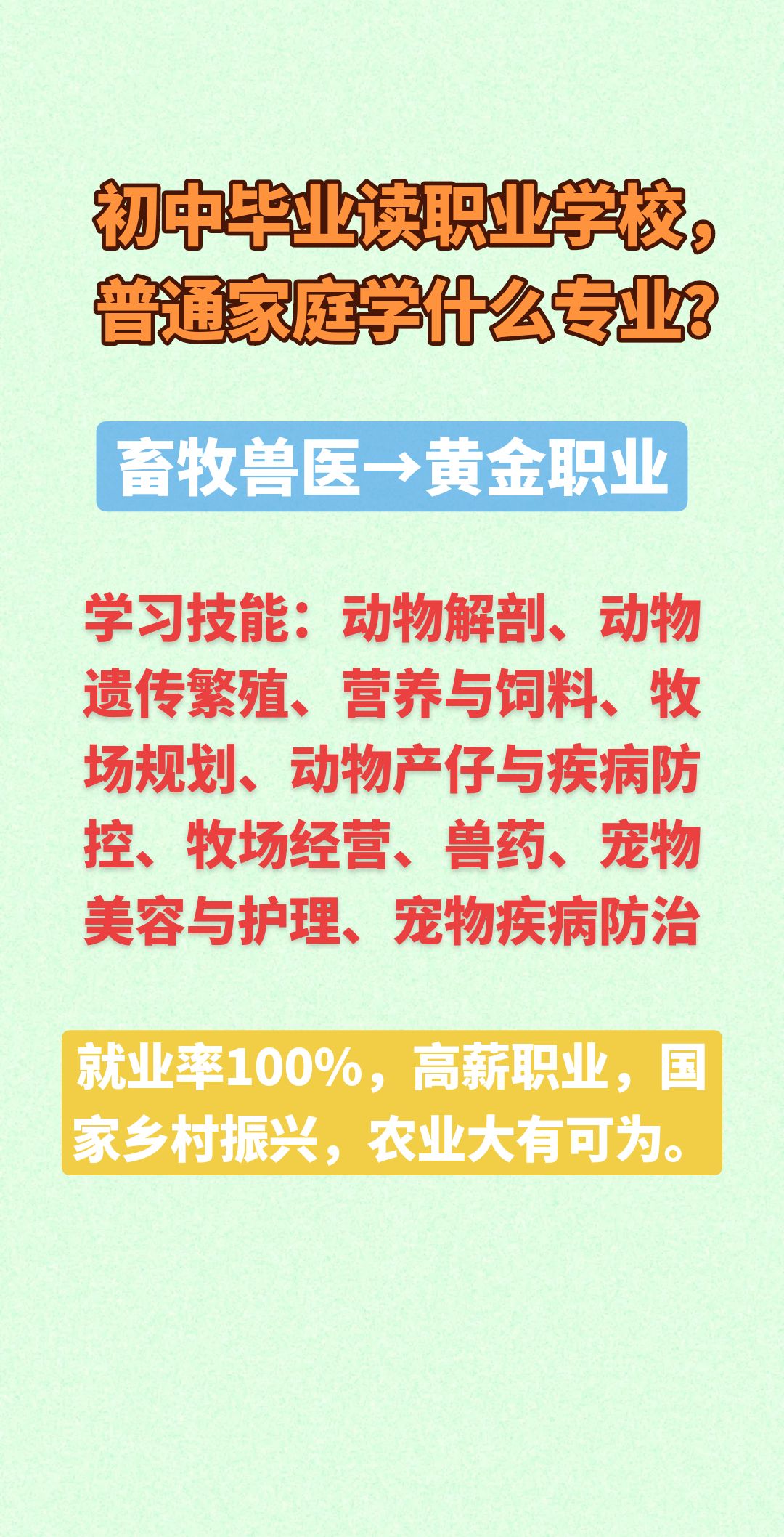 初中毕业后选择宠物专业或兽医类相关专业,是一个结合当下市场需求的务实选择,尤其适合对动物感兴趣、喜欢动手实践的学生。以下从行业前景、学习路径、适合人群等方面具体分析,供你参考: